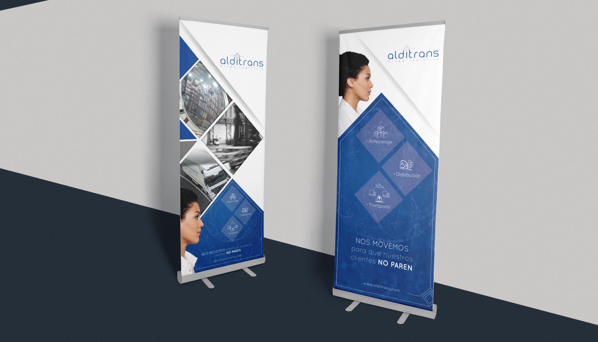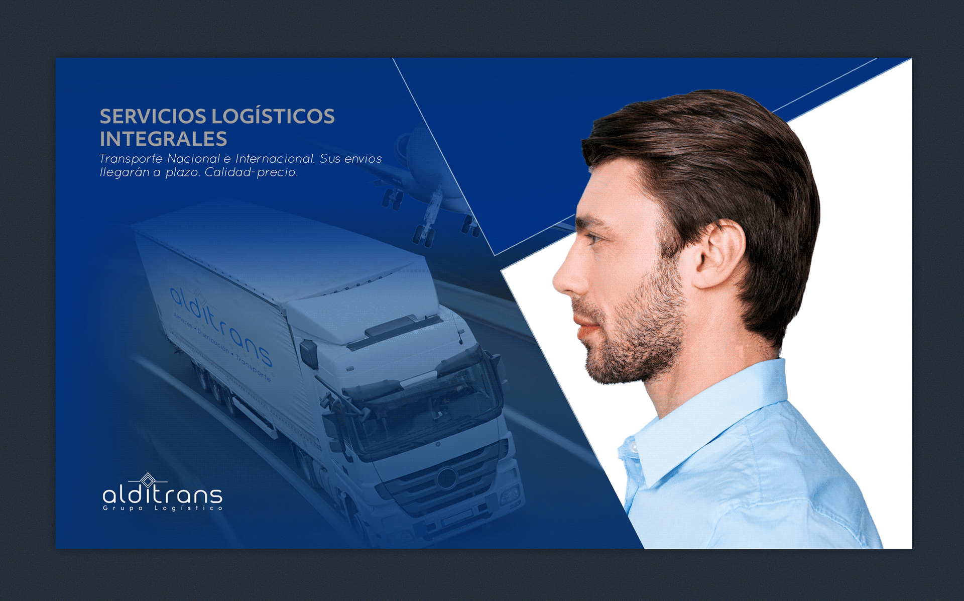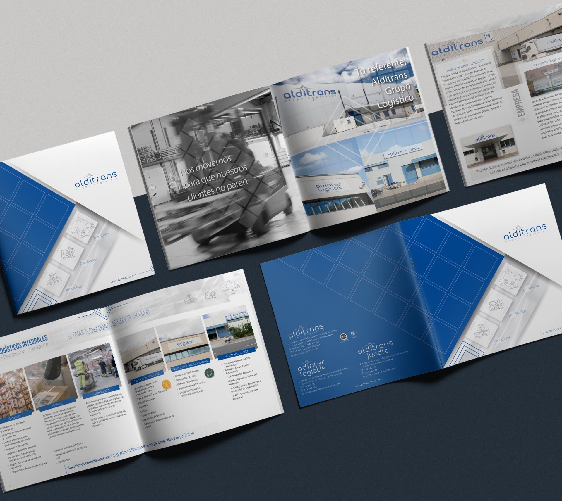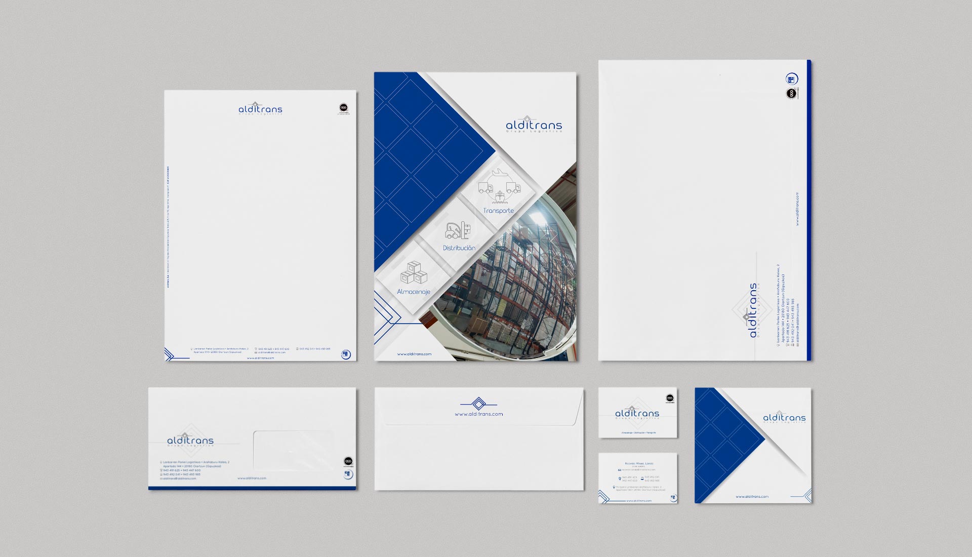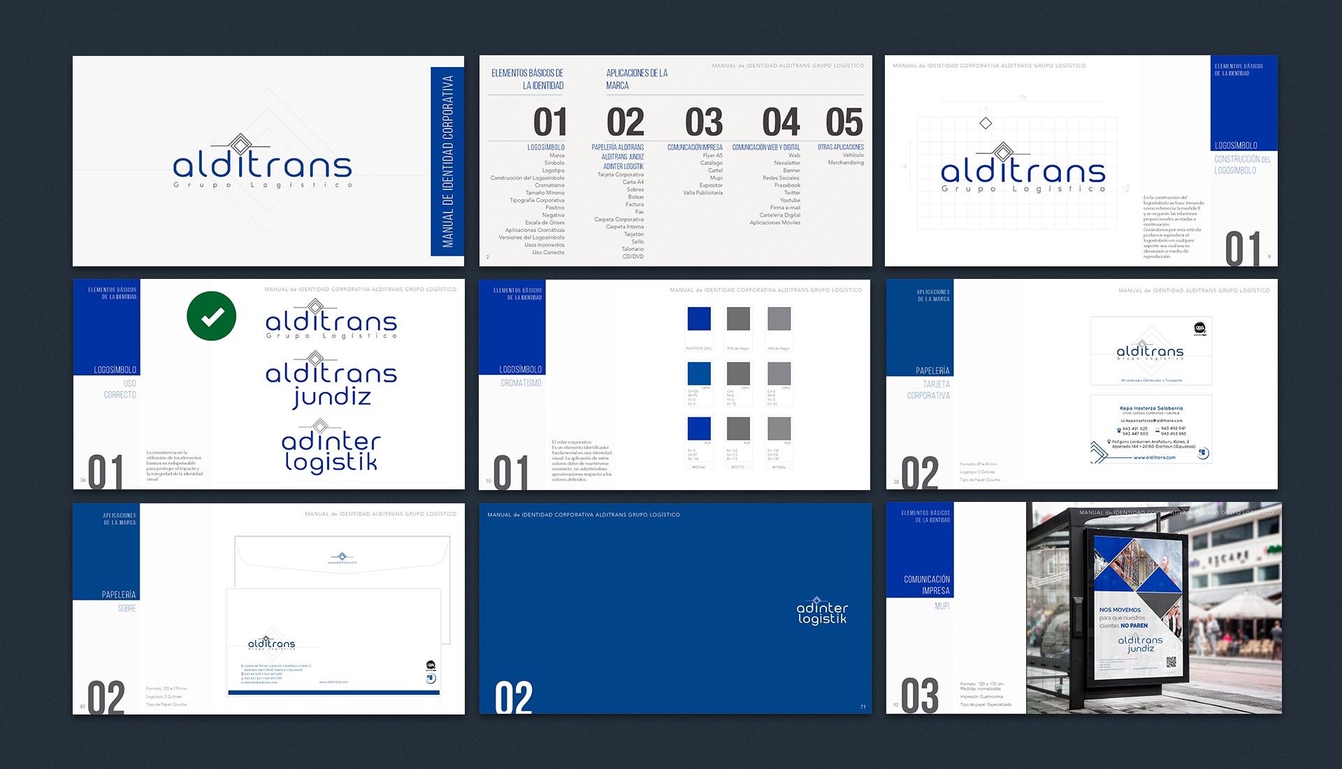 Alditrans es una de las mayores estructuras logísticas del País Vasco, encargada de gestionar el transporte local, nacional e internacional, la administración de almacenes, aprovisionamiento y picking. El encargo fue un reto realmente apasionante y enriquecedor: actualizar el diseño de la identidad corporativa de la empresa manteniendo la coherencia con el posicionamiento actual del grupo Alditrans, Alditrans grupo logístico, Alditrans Jundiz y Adinter logistic.