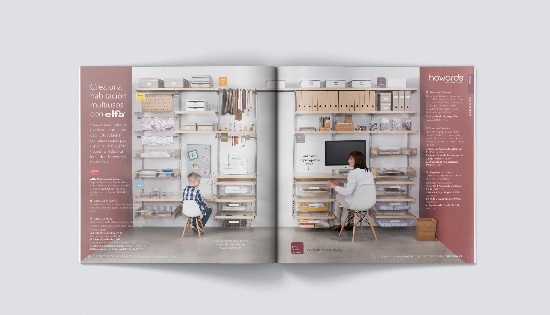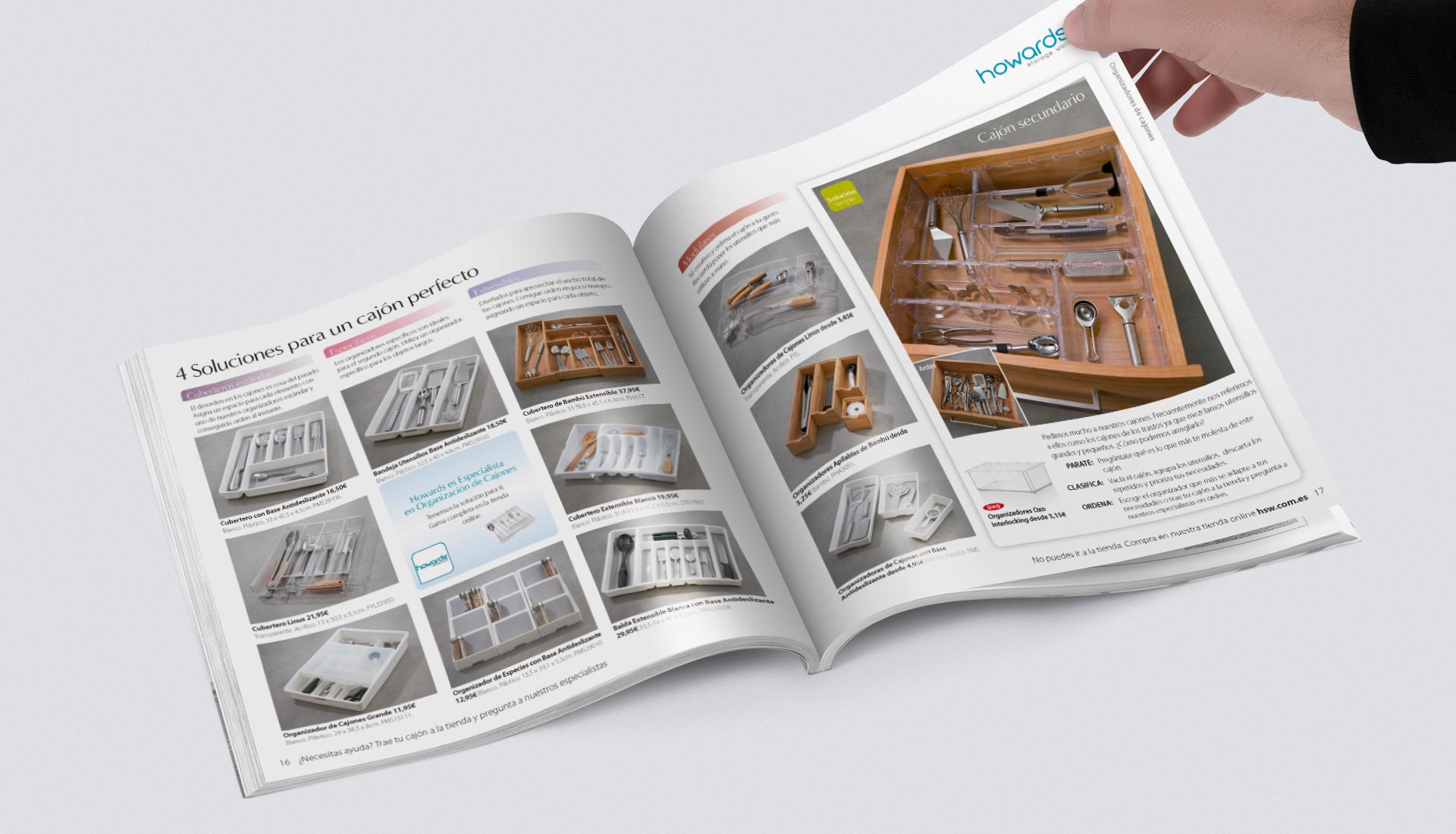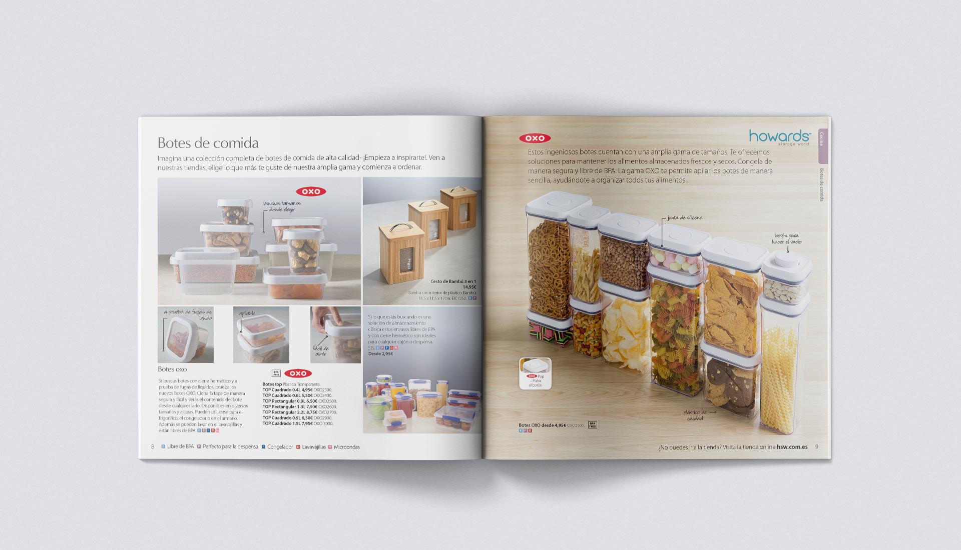 La colaboración con la compañía se realizó en el campo del diseño editorial para el catálogo de Howards Storage Group España, realizando la maquetación de la publicación y participando en otras actividades relaciondas con el diseño gráfico, como la correción diseños y algunos artes finales.